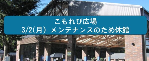 3/2(月)はメンテナンスの為、こもれび広場は終日利用休止となります。