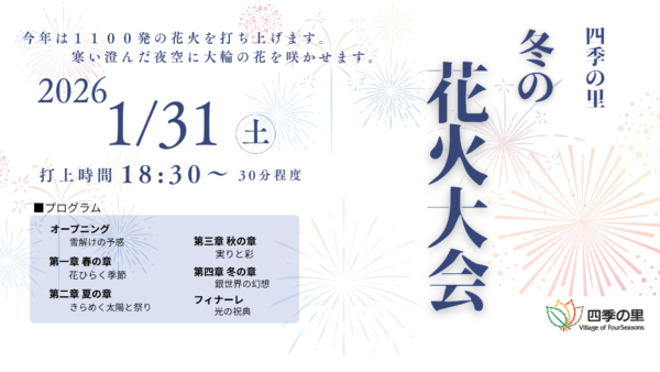 NEWS & EVENT お知らせ&イベント情報 2025-12-27 2026年1月31日(土) 冬の花火大会開催のお知らせ 詳しく見る 2025-12-23 1月の営業日 詳しく見る 2025-12-05 レンタルボックス(hakoni… 詳しく見る 2025-12-03 委託販売を募集します!! 詳しく見る 2025-12-03 2025年12月6(土)~25(木) 工芸館クリスマスキャンペーンの… 詳しく見る 2025-12-01 イルミネーション中止のお知らせ 詳しく見る 1 2 3 … 37 〉 EVENT CALENDAR イベントカレンダー PICK UP INSTAGRAM @f.shikinosato TWITTER @f_shikinosato Tweets by f_shikinosato TWITTER @f_shikinosato
