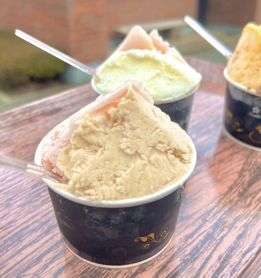 「もったいない」から生まれたソルベ・ジェラート『MOTTAI』をはじめ、福島の酒蔵の酒粕ジェラート(アルコール入り)や定番のミルク・チョコレートなど様々な味がお楽しみいただけます。