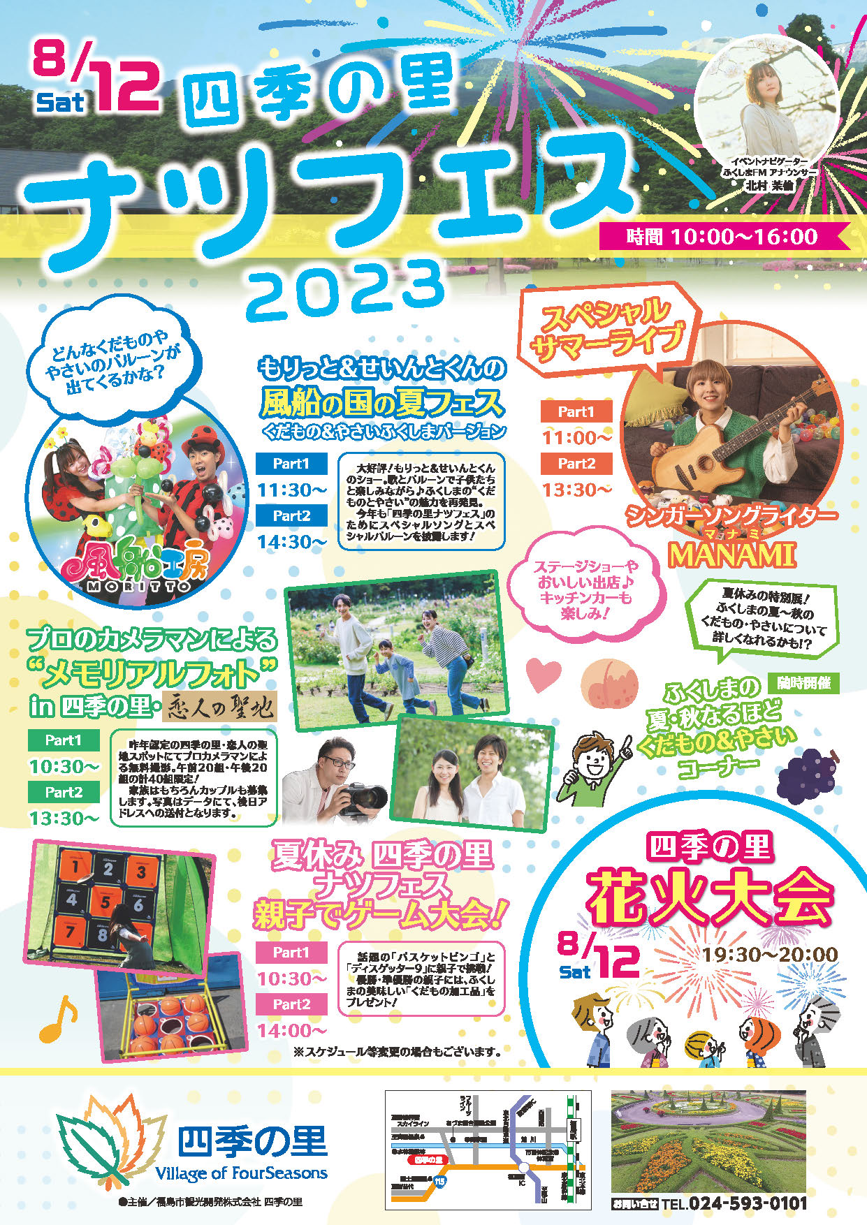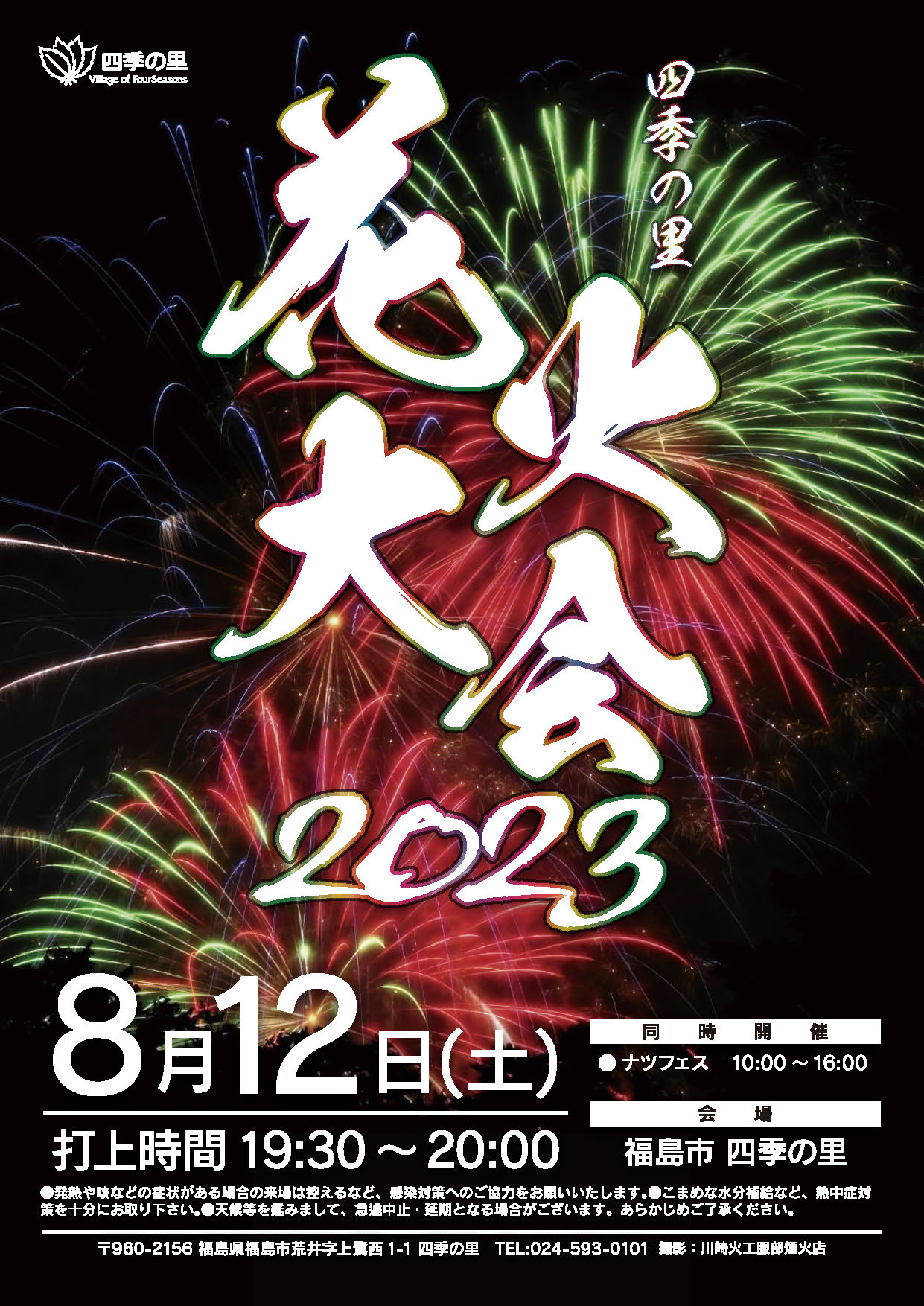 この度2023年8月12日(土)に四季の里ナツフェス2023、四季の里花火大会2023を開催いたします。