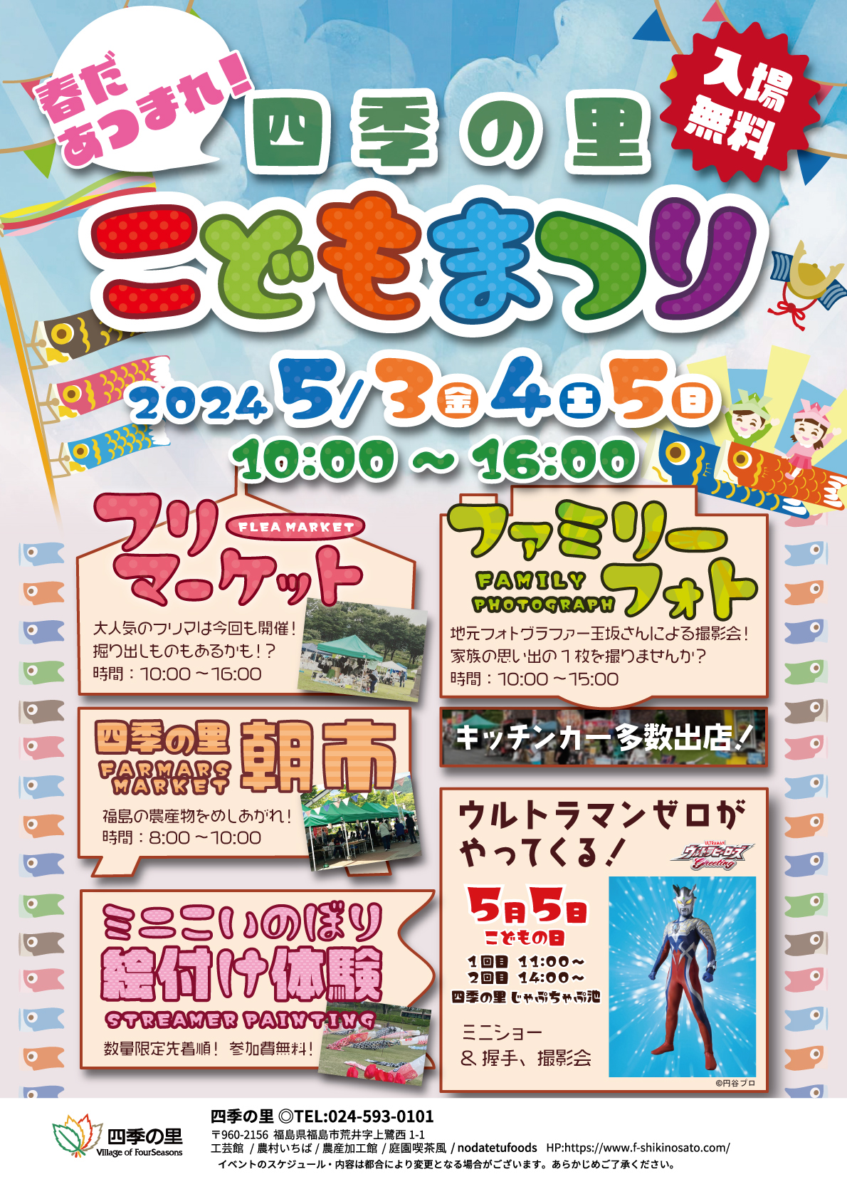 この度2024年5月3日(金)~5日(日)の3日間、四季の里こどもまつりを開催いたします。