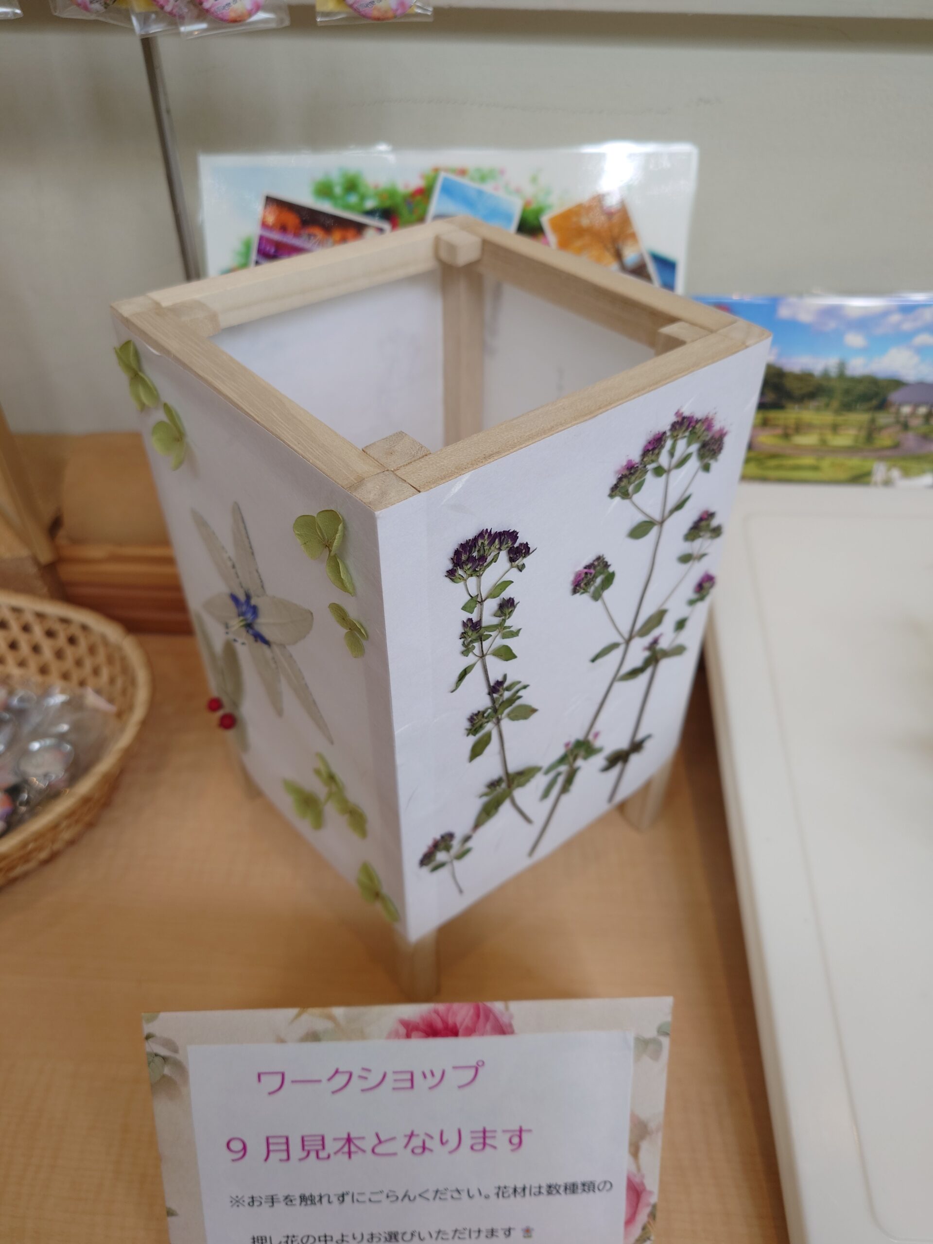秋にぴったり、園内で採れた押し花でモダンなイメージのインテリア体験