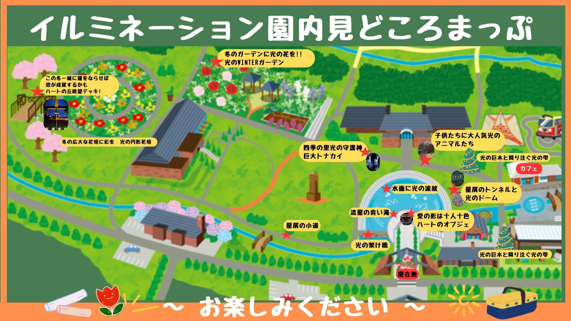 NEWS & EVENT お知らせ&イベント情報 2024-12-22 イルミネーション見どころ園内まっぷ 12/21(土)~点灯開始しました四季の里イルミネーションの見どころマップを作成しました。 正面案内所後方にも掲示しております。 お越しの際は是非ご活用下さい。 このイベント情報をシェアする 前のページ 一覧ページへ 次のページ INSTAGRAM @f.shikinosato こんにちは!四季の里です🌿 少しず こんにちはバラ王子🤴です🌹なんと X @f_shikinosato Tweets by f_shikinosato X @f_shikinosato