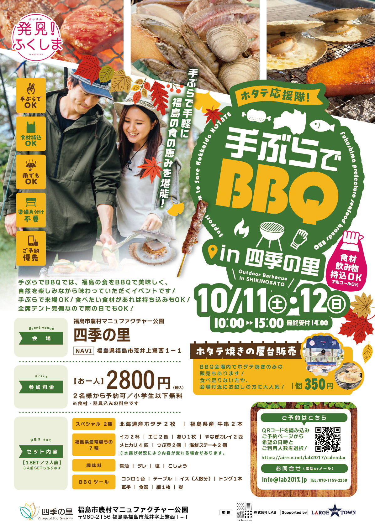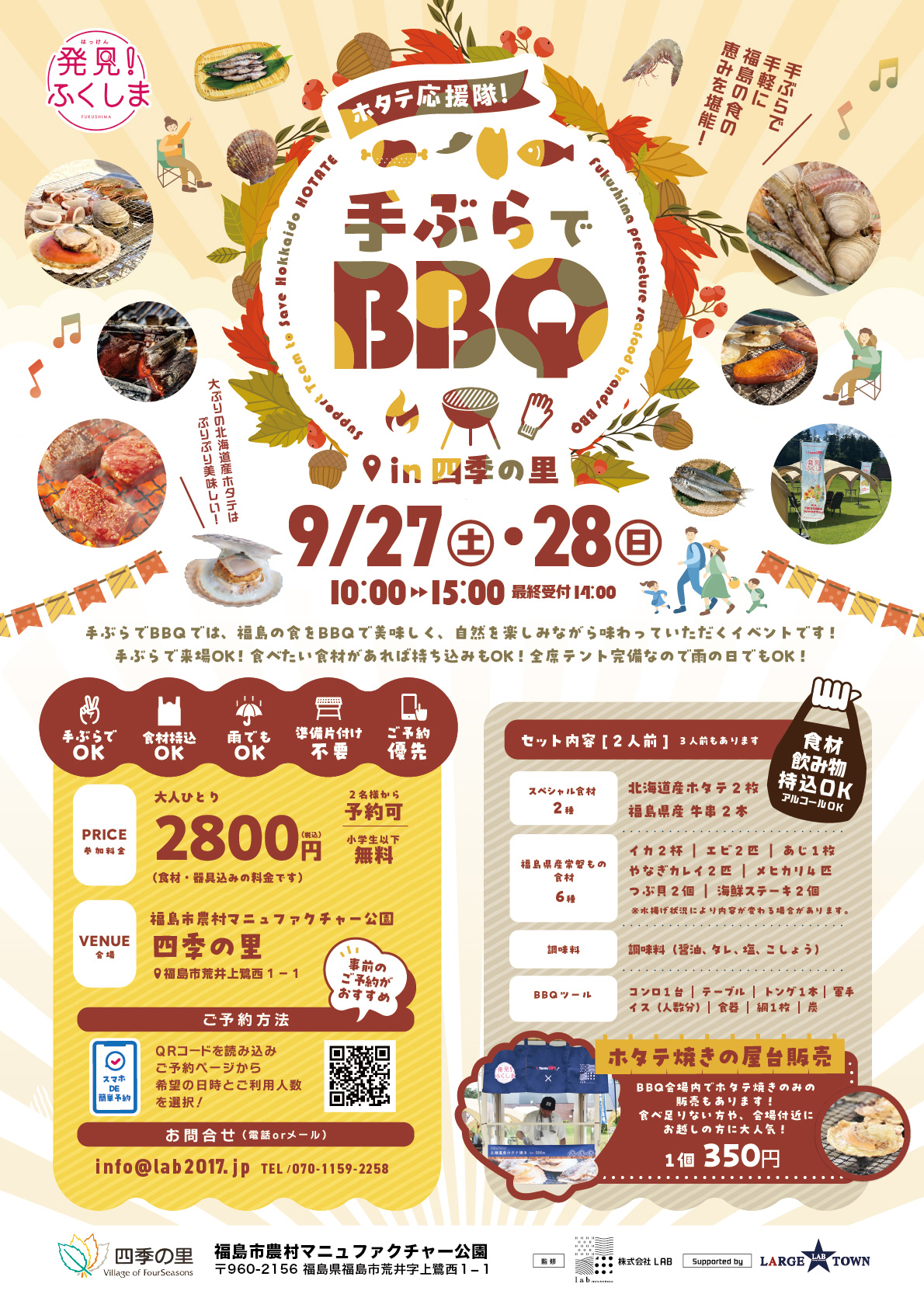 お知らせ&イベント情報手ぶらでBBQ開催のお知らせ(9月~10月詳細)
