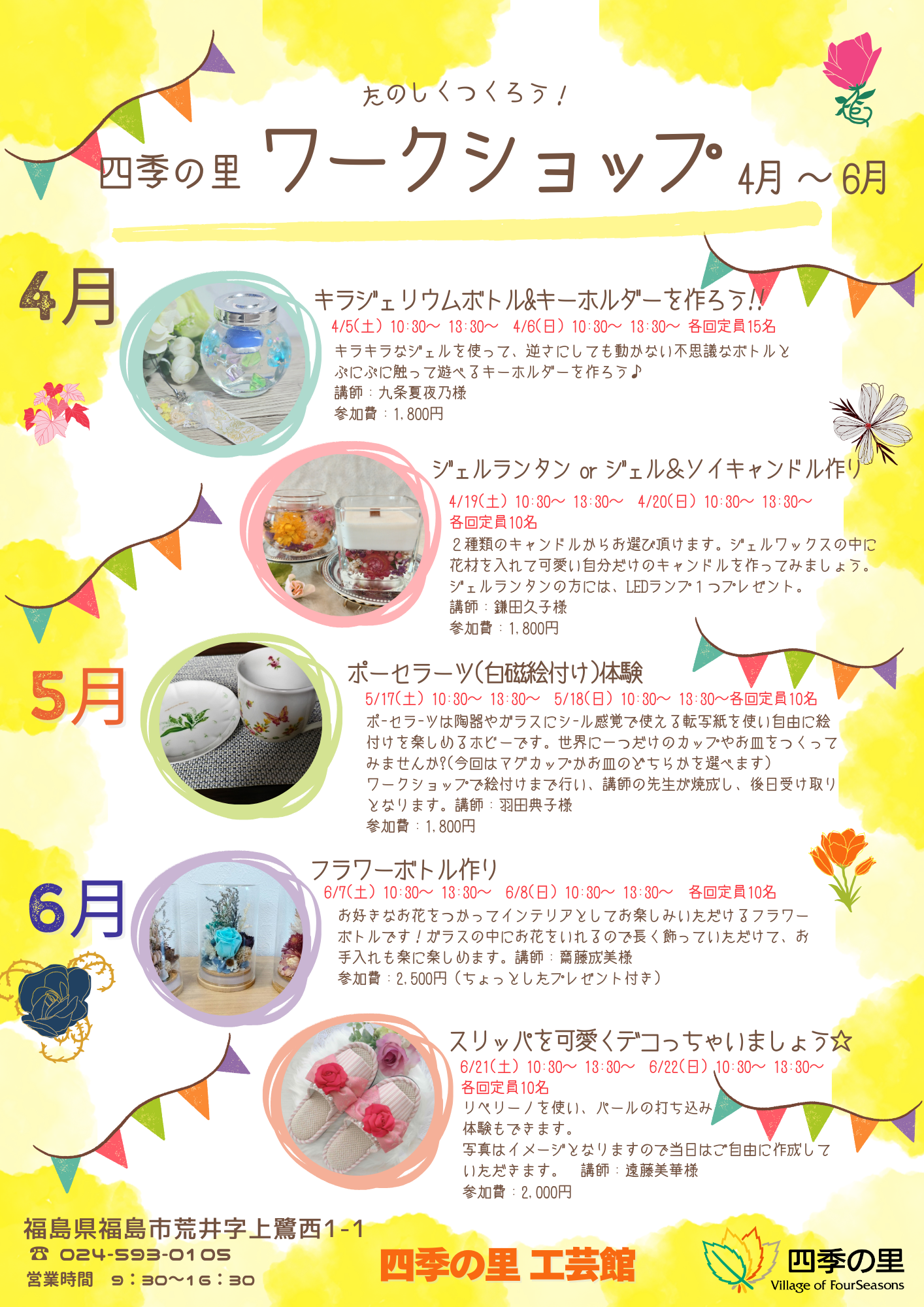 お知らせ&イベント情報四季の里ワークショップのご案内(4月~6月)